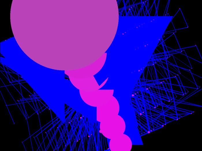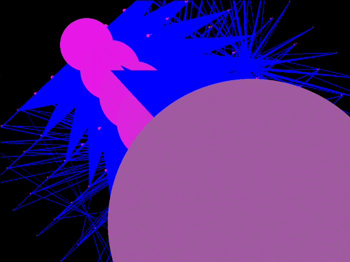The colours were deliberately garish to highlight the three elements: vertices, the polygon edges joining the vertices, and colours indicating the distance of the (spherical) vertices.