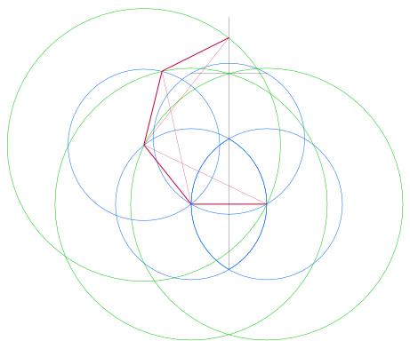 At nineteen I was naïve enough to take that as a challenge and I set to, armed like the geometricians of ancient Greece, with straight edge, compass and pencil, in an eager attempt to disprove her assertion, using a kind of “reverse engineering” to locate arcs in the hexagon that might match those of the heptagon. After two years I found a way, the first action of the method (neatly) being to bisect one of the sides of a hexagon. As soon as I had discovered this I also realised (while attempting through research to determine that I was not simply reinventing some heptagonal wheel) that throughout history, numerous mystics, kabbalists and obsessives had arrived at flawed solutions to this and other long-term insolubles of mathematics. They are derided as “circle squarers”, from the name of one of the three famous construction problems of classical Greek geometry where it is required that a square be constructed of the same area as a given circle; a problem recognised as eluding all solution, and abandoned by serious mathematicians when, in 1882, the German mathematician Lindemann proved pi to be an irrational number. Even if—miraculously—my construction were exact, I realised that I would, despite my empirical skills in planar geometry, be thrown into the same bag as these perennial new-agers, and the discovery would pass unnoticed. It was Pythagoras who unleashed a flood of occult theories associating geometric forms with what were regarded at the time as universal principles, and I could easily be dismissed as the latest end point of a long meandering line going nowhere.